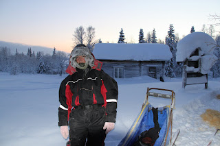 We were out for a fantastic two day tour. When we left the kennel in Slussfors the themomiter was down on -39 C, but the sun was shining and we saw an amazing "rainbow", the snow was reflecting in the snowcristals.